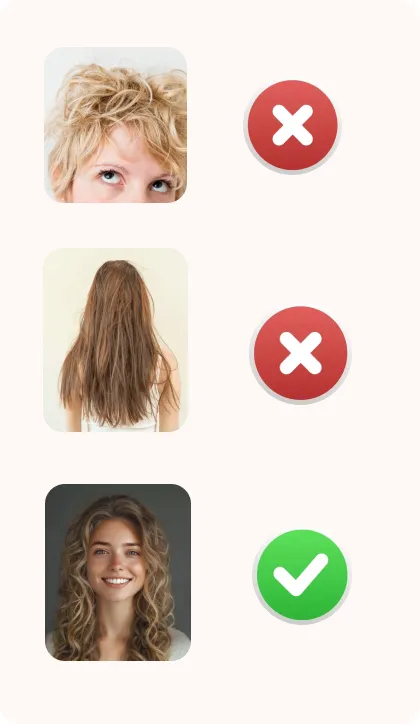 انتخاب تصویر مناسب: از تصاویری استفاده کنید که وضوح بالایی داشته باشند و صورت شما بهوضوح دیده شود. بهتر است تصویر در نور طبیعی گرفته شده باشد تا رنگ مو و جزئیات چهره بهخوبی نمایان شود.