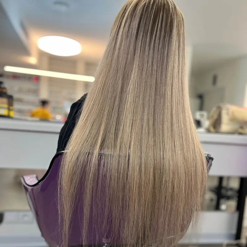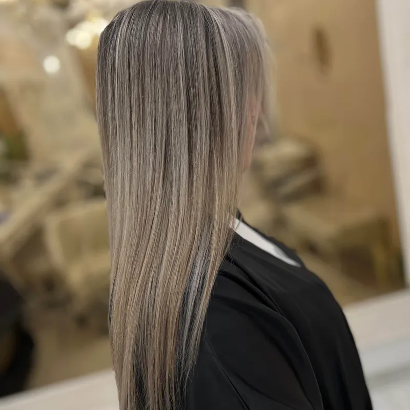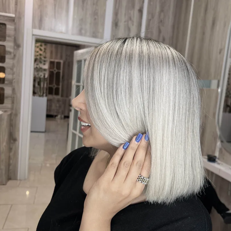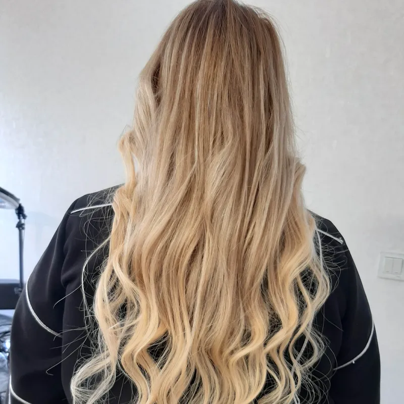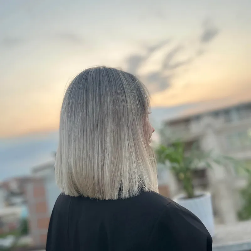 تمام دکلره.موی رنگ روشن.رنگ مو استخوانی