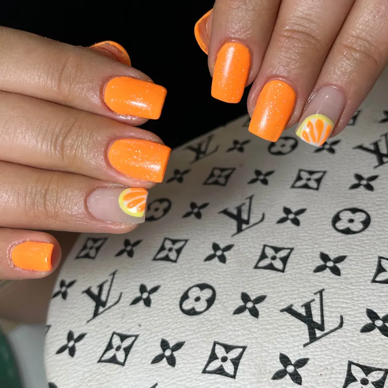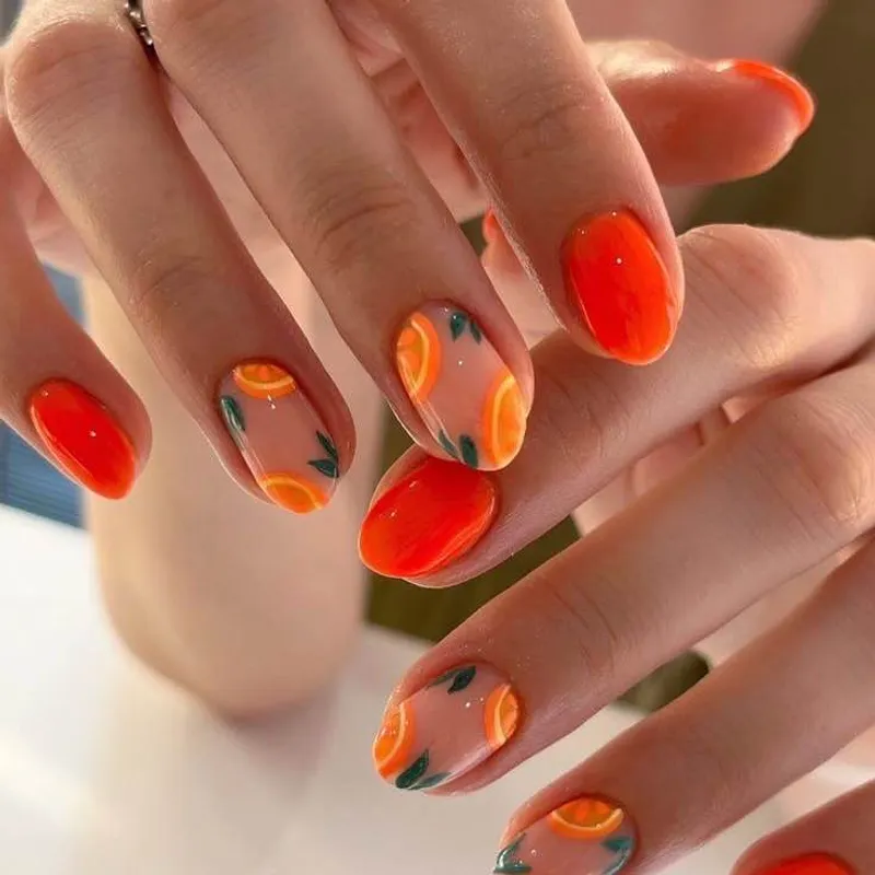 ناخن طرح میوه پرتقال یکی از شادترین و پرطرفدارترین طراحیهاست که با رنگهای گرم و زندهاش حس انرژی و نشاط رو به ناخنها میاره. این مدل با الهام از برشهای پرتقال و پوست خوشرنگش، یه گزینه عالی برای روزهای تابستونیه. اگه دوست دارید ناخنهاتون خاص و متفاوت باشه و حس تازگی رو تداعی کنه، دیزاین ناخن با میوه پرتقالی میتونه یه انتخاب عالی باشه.