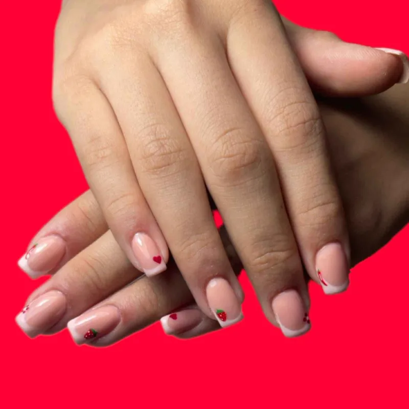 گیلاس با رنگ قرمز خوشرنگ و اندازه کوچیکش یه انتخاب عالی برای یه کاشت ناخن میوه ای هستش. این میوه جذاب که نماد تازگی و انرژی محسوب میشه، میتونه ناخنهای شما رو خاص و متفاوت کنه. ناخن طرح میوه ای گیلاسی با ترکیب رنگ قرمز و سبز، هم حس شادی و نشاط رو به دستانتون میاره و هم ظاهری شیک و متفاوت به ناخنهاتون میده. اگه دنبال یه کاشت ناخن با میوه ساده و دوستداشتنی هستید، مدل ناخن گیلاسی میتونه بهترین انتخاب باشه.