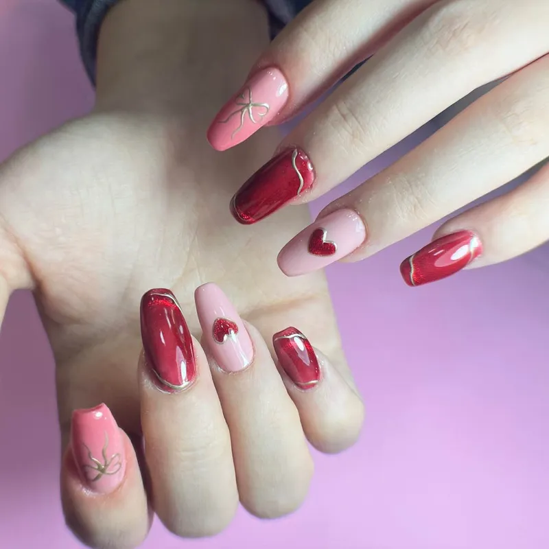 طرح ناخن جدید برا عید پاپیون با استفاده از شکل های زیبا و دلنشین پاپیون، یه جلوه خیلی جذاب و متفاوت به دست های شما میده. این مدل ناخن واسه عید به خصوص برای کسایی مناسبه که دنبال طرح های جذاب و متفاوت هستن. طرح ناخن شیک برای عید میتونه به صورت نقش های ساده یا با جزئیات بیشتر و با ترکیب رنگ های مختلف طراحی بشه و به ناخن های شما حالت جذابی بده.