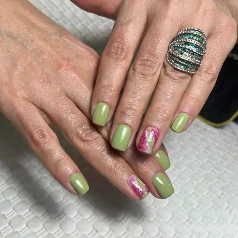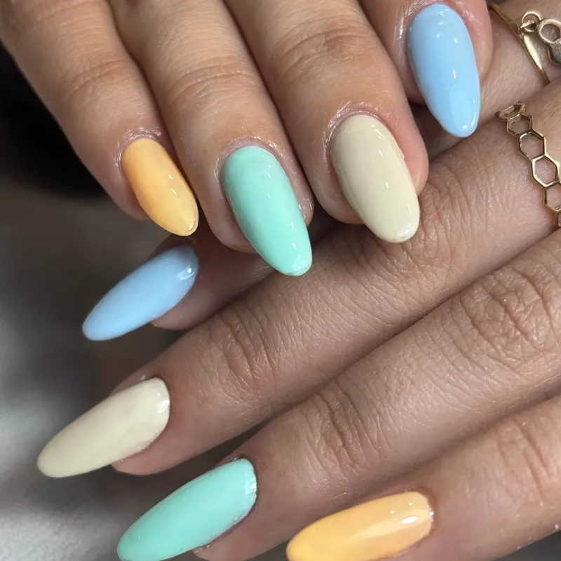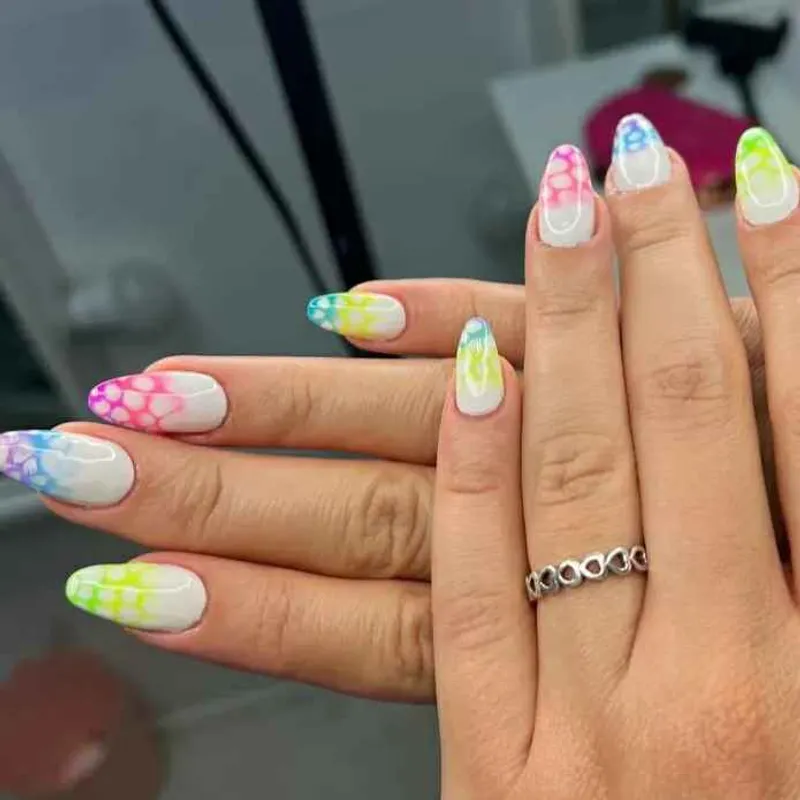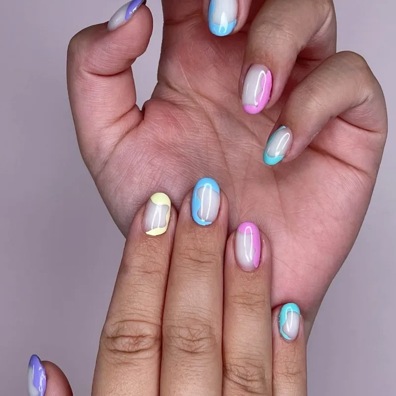 مدل لاک ناخن بهاری ماربل یه مدل ناخن برای بهار خیلی پر طرفداره. این طرح ناخن برای فصل بهار با استفاده از رنگ های شاد و متفاوت و به شکل سنگ مرمر انجام میشه که خیلی نتیجه جذابی روی ناخن ها داره.