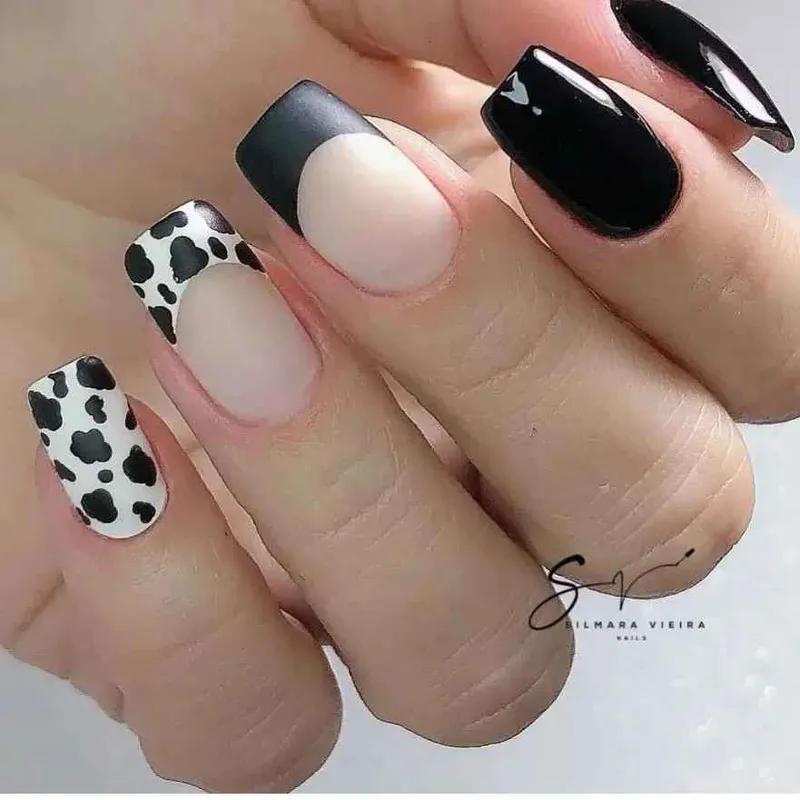 فرنچ طرحدار هم توی تابستان خیلی طرفدار داره. از شخصیت های کارتونی و پترن های رنگی رنگی مثل پلنگی و گورخری و … در این مدل زیاد استفاده میشه. بسته به سلیقه خودتون میتونین تغییرش بدین و به این صورته که این طراحی ها مثل فرنچ فقط روی تیپ ناخن یا توی خود فرنچ قرار میگیرن.